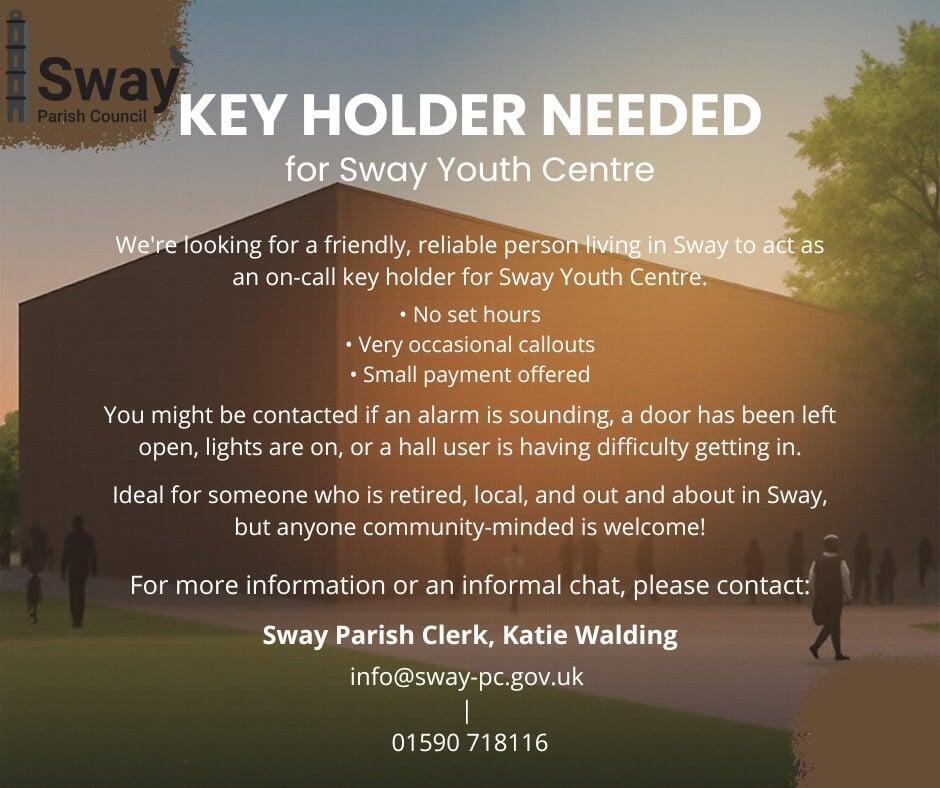 Alex Pepper, long serving councillor at Sway, has recently resigned after many years of service. We all thank Alex for her hard work and support and wish her well in her other voluntary roles. This leaves us with a gap in the team. If you are an enthusiastic and motivated resident who would like to get involved in all matters Sway, then please contact any councillor o the parish office for more information.