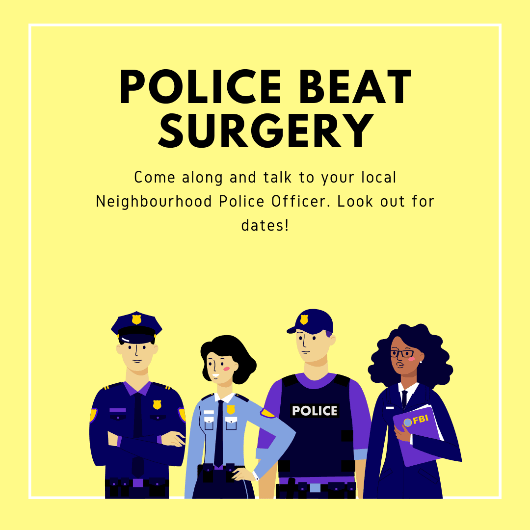Every month, we hold Police Surgeries in different locations around the village. Why not come along and meet your local Bobby?
